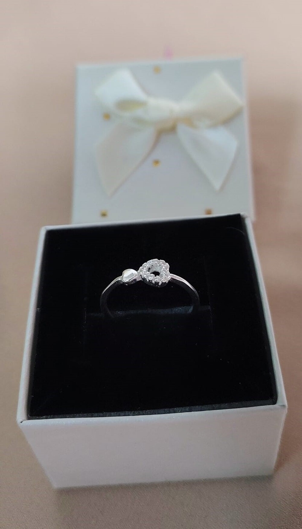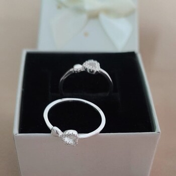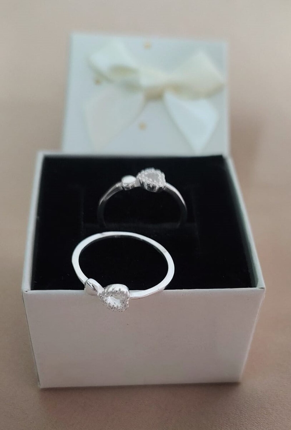 Anel 2 Coracoes 1 Liso E 1 Cravejado na Prata 925