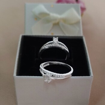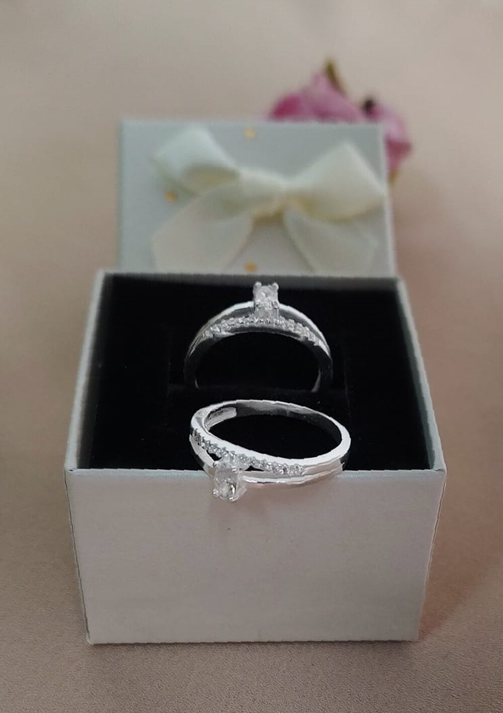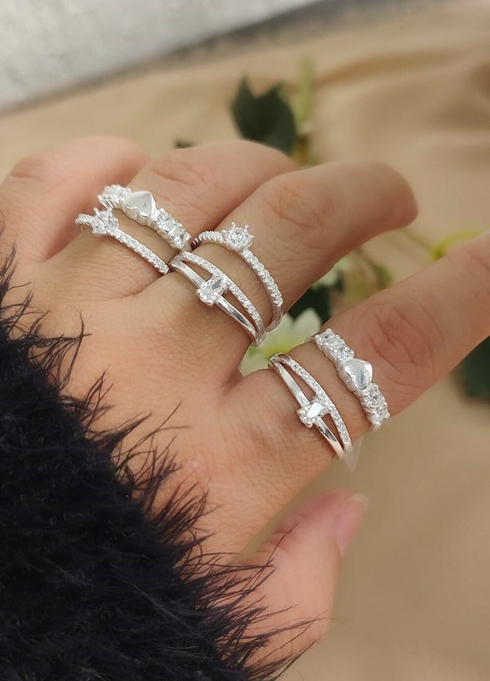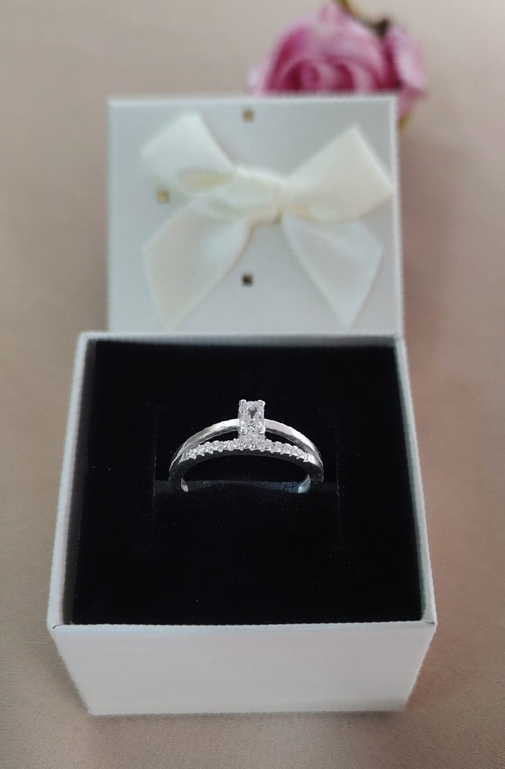 Anel estilo solitário Pedra Retangular com separador cravejado zirconia