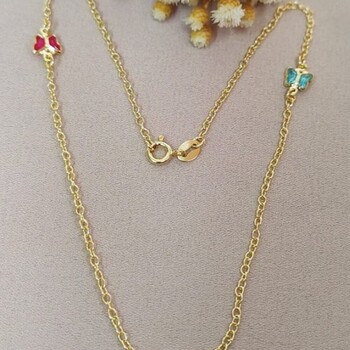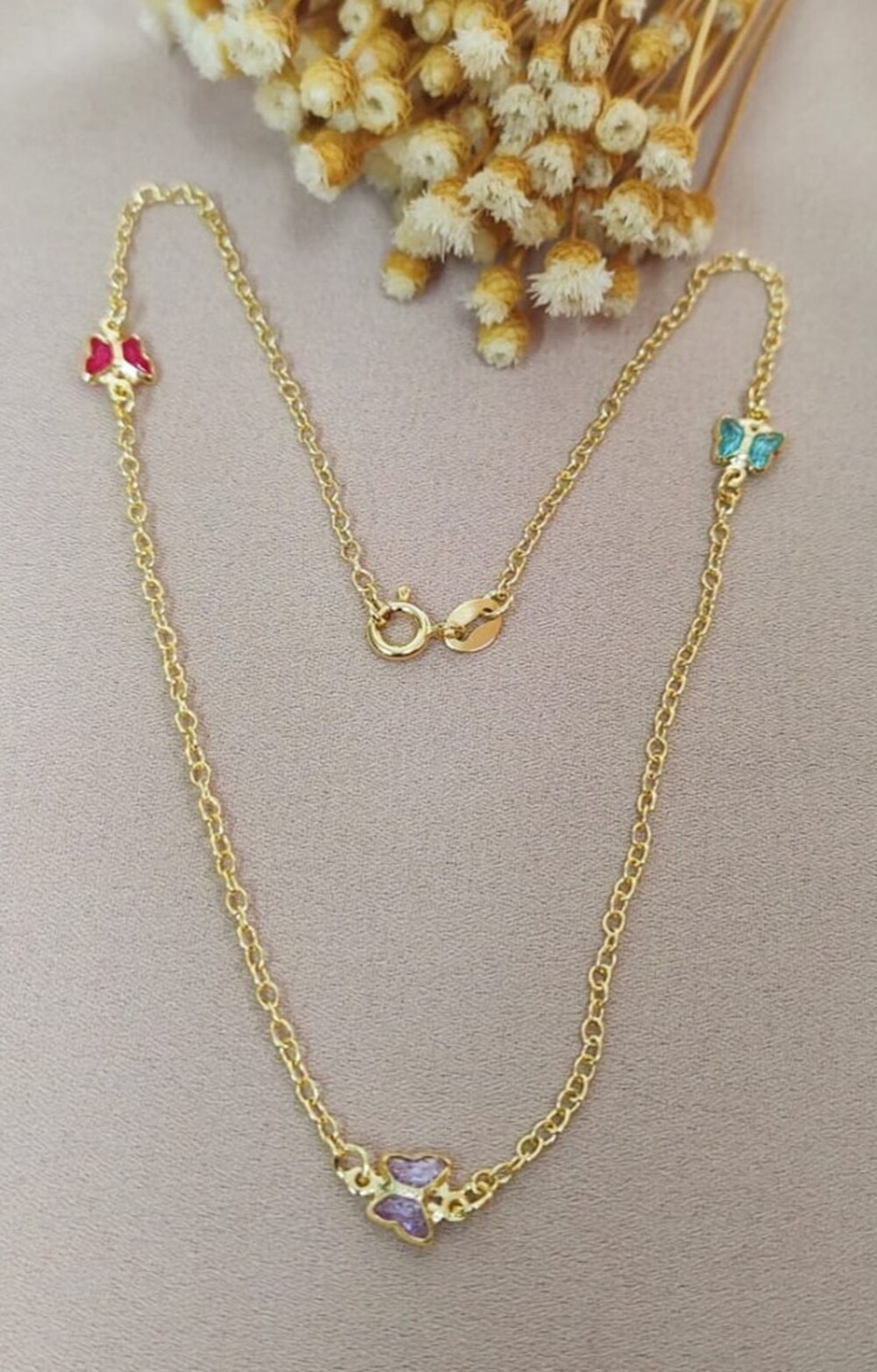 Colar infantil elo Redondo 3 Borboletas Zircônias Colorida 35cm.